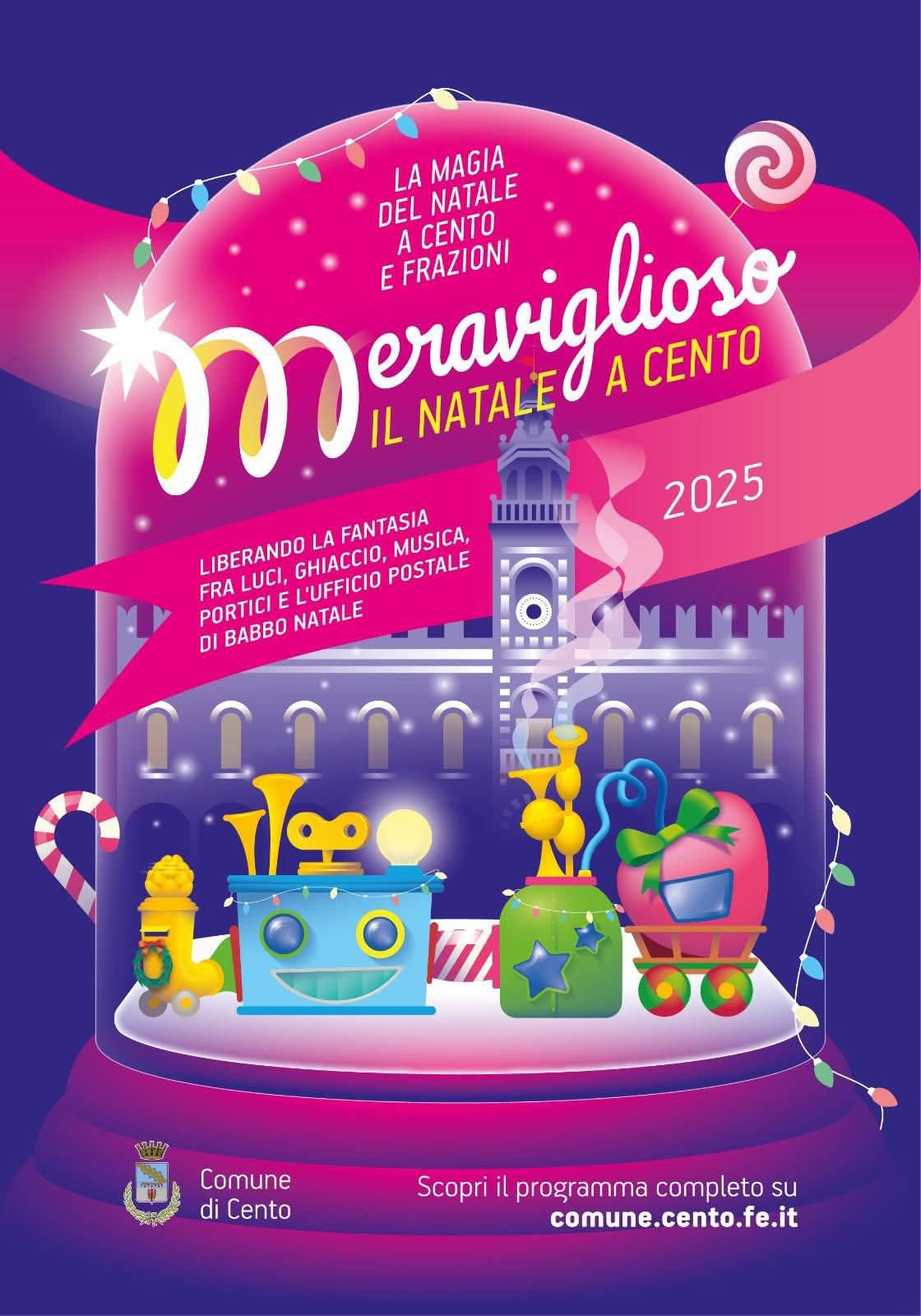 Il programma completo di “Meraviglioso. Il Natale a Cento e Frazioni 2025” è disponibile sul sito istituzionale e sui canali social del Comune di Cento.